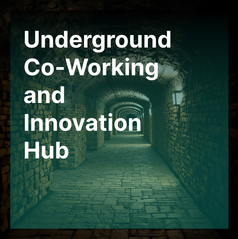 Given the rising need for adaptable workspaces and urgent calls for sustainable design, a fundamental re-evaluation of our built environment is required. This challenge invites participants to conceive of a future where work and innovation flourish underground, leveraging the natural benefits of subterranean spaces. Envision a design that merges effortlessly with the earth, significantly reducing ecological footprint while cultivating a vibrant community for entrepreneurs, artists, and innovators. The proposal must consider the well-being and productivity of occupants in an underground setting, using inventive strategies to address their psychological and physiological needs. Designs should explore methods for introducing natural light, ensuring proper ventilation, and maintaining a connection to the world above, all while honoring the distinctive characteristics of subterranean architecture.